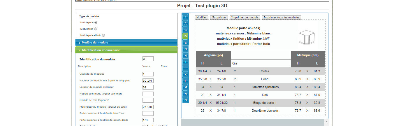 Démonstration du logiciel de cuisine Fusion 3D / SketchUp et la réalisation des informations générées par le logiciel.