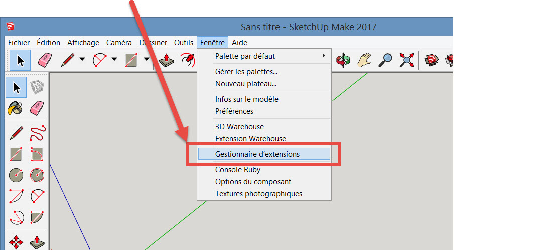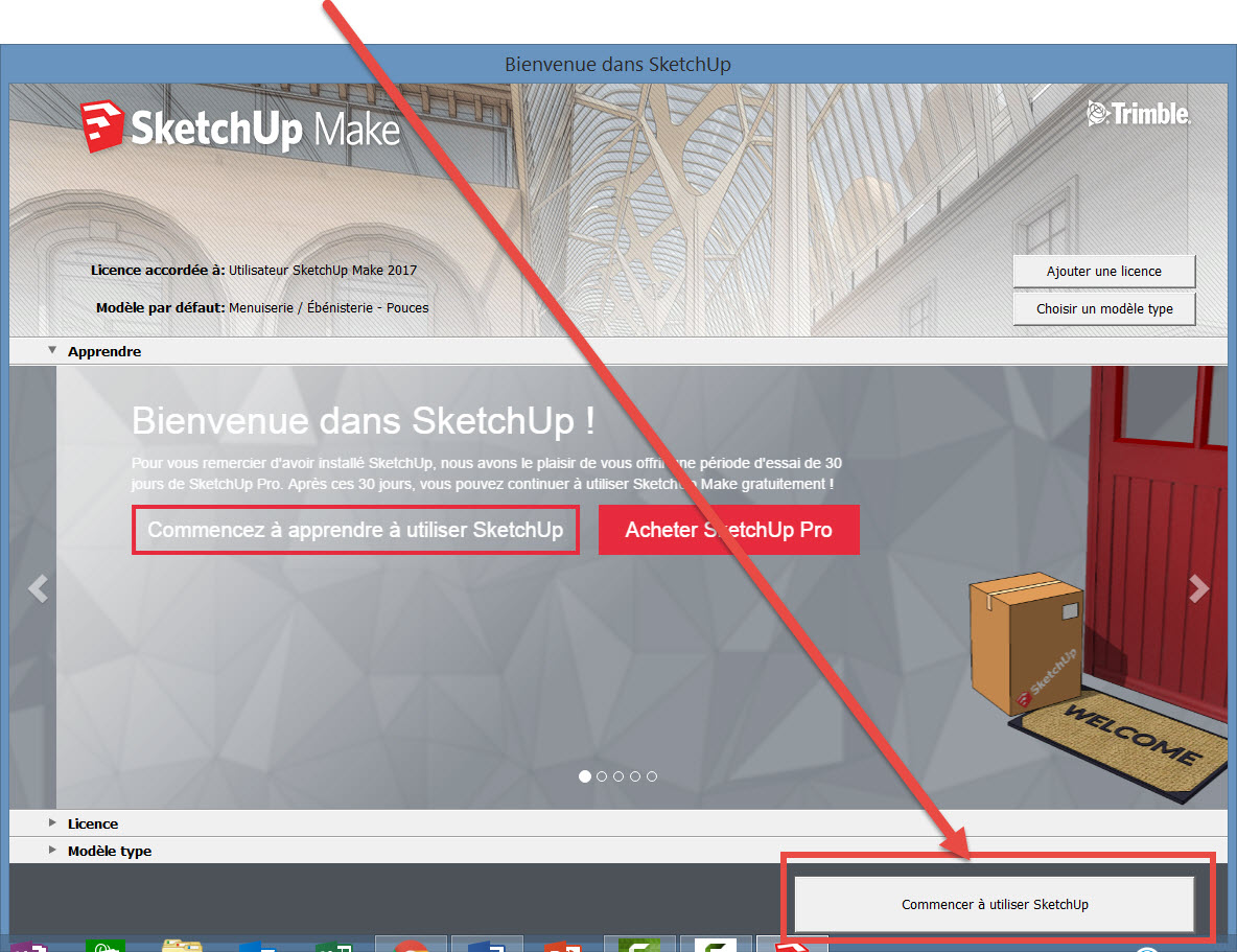 Sur votre bureau (ordi), ouvrez le logiciel SketchUp. Si vous n’avez pas déjà installé SketchUp cliquez sur ce lien : Téléchargement de SketchUp (AVIS pour la version gratuite c’est SketchUp Make 2017)