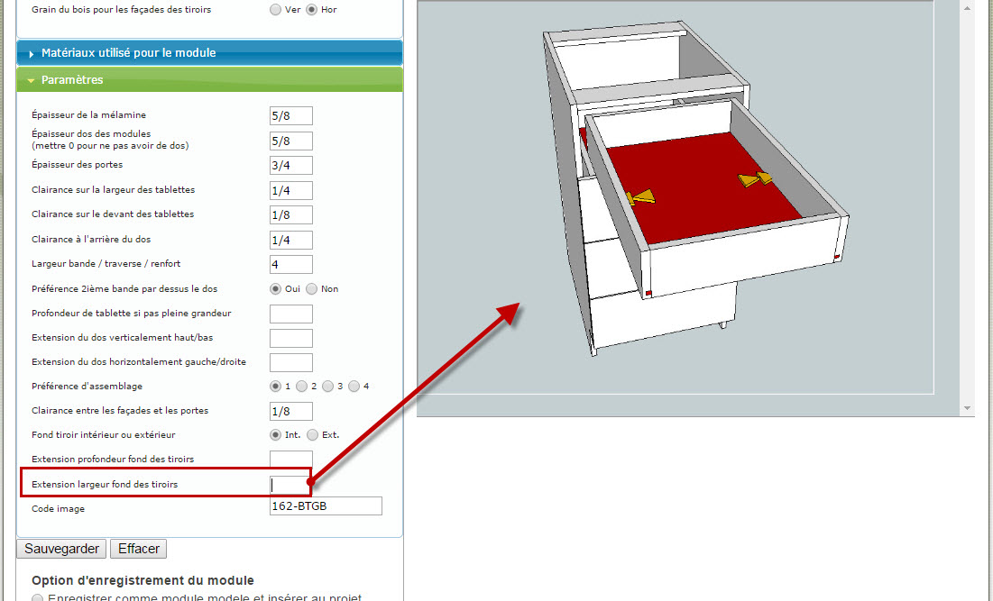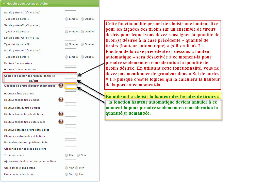 Paramètres du logiciel d’armoires de cuisine pour hauteur des façades de tiroirsVous pouvez cliquer sur l’image pour l’agrandir.